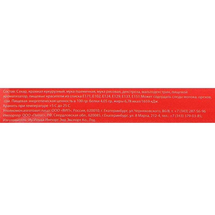 Composition: sugar, corn starch, wheat flour, rice flour, dextrose, martodecstrin, food flavor, food dyes.