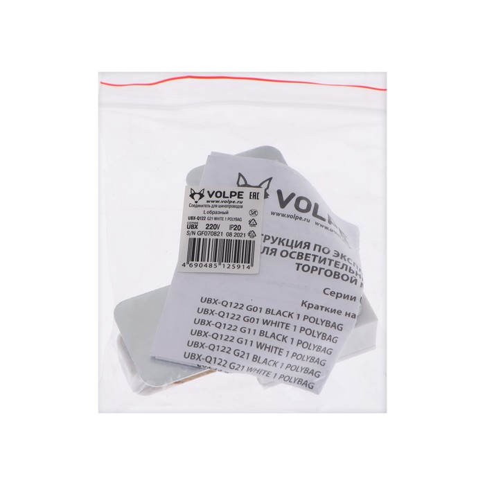 Connector for the Volpe, Q122, G21, L-shaped, single-phase, white