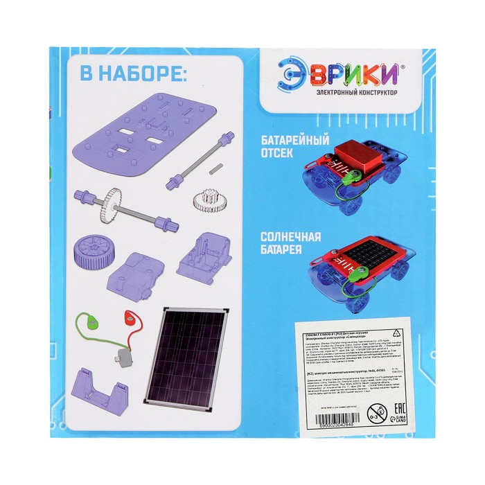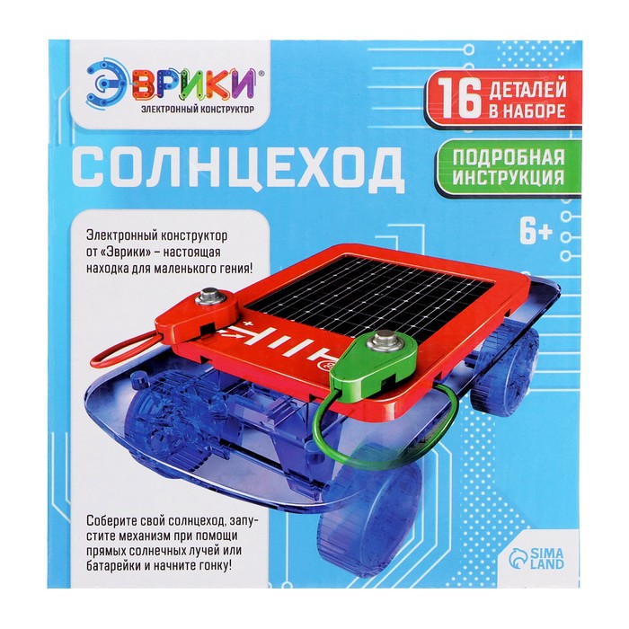 training in practiceto collect the space car, it is necessary, guided by the instructions of the instructions, to consistently connect the parts, connect the motor and install the block with the power elements. The machine will work from two energy sources: sunlight or 2 AA batteries (not included).