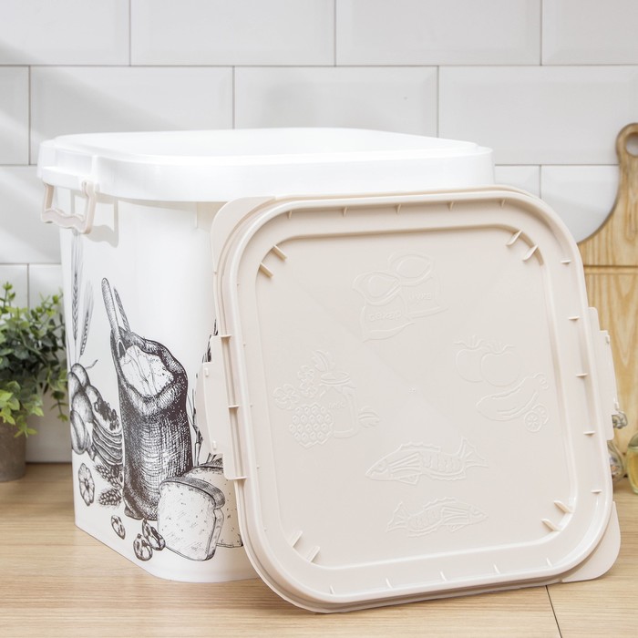 Container for flour and sugar, 25 l, decor, white color