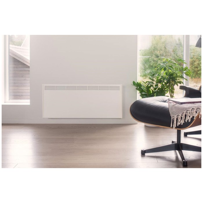 convector with the front steel panel. The electric convector with the front steel panel P 24 Beha (Beha) will warm the room up to 20 sq.m. The convector is equipped with a 1.5 m cable with a plug fork and a distribution box for a stationary connection. To control the device, a switch and a high -precision electronic thermostat are provided. He has impact -resistant side surfaces of the case. The installation is extremely simple. To do this, use the bracket on the wall four holes, screw the screws into them and install the heater in a stationary position.