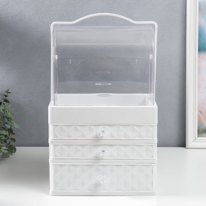 Cosmetics box plastic "Rombs. White. 3 boxes" 42x16.5x25 cm
