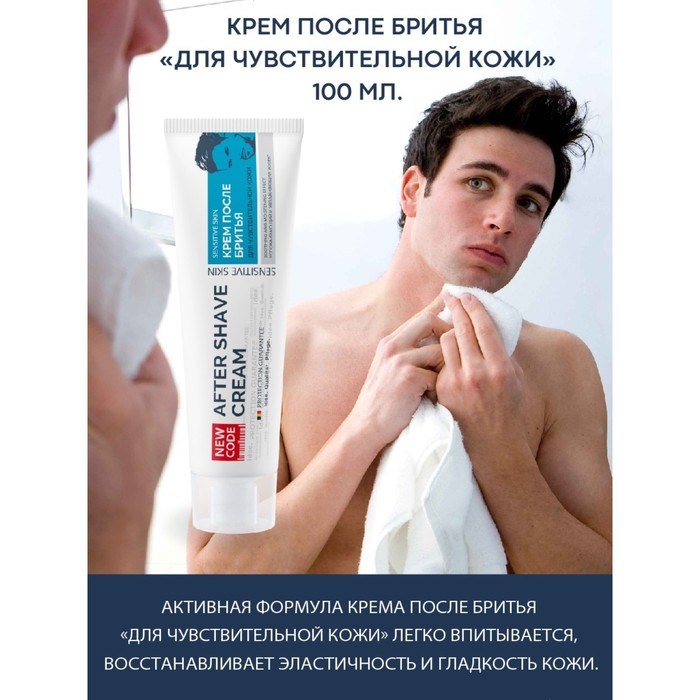 The active formula for the shaving of the New Code “for sensitive skin” is easily absorbed, restores the elasticity and smoothness of the skin. The red oil has an anti -inflammatory effect, relieves irritation and redness, softens the skin. Aloe Vera extract is rich in vitamins, minerals and amino acids, perfectly moisturizes and soothes the skin. Panthenol is known for its healing properties. The cream has a soft cooling effect, gives a feeling of freshness after shaving.