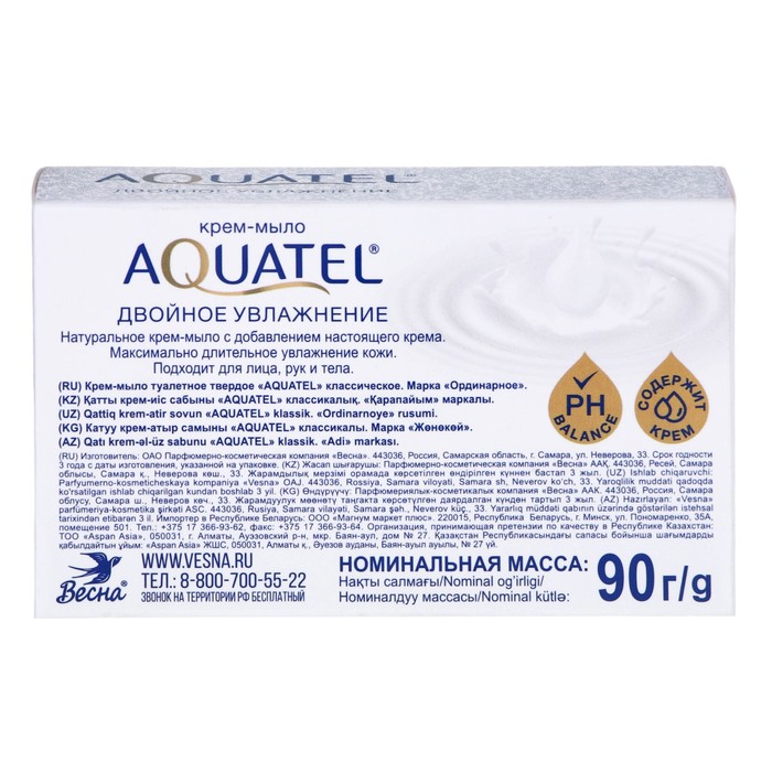 Creaml a solid Aquatel is a soft cleanser that reduces the likelihood of irritation or dry skin, therefore it will become an ideal addition to cosmetic products that you use daily for both the face and for the body.