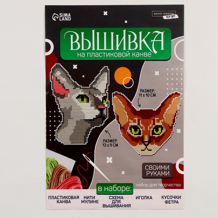 Cross -stitch on the plastic canvas "Important cats", a set for creativity