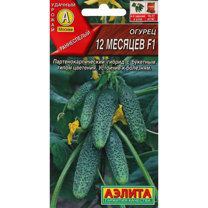 Early Parthencarpic Hybrid. Lays from 4 to 6 ovaries in the knot. From seedlings to fruiting 42-45 days. Feminine -type plants. The greenish are white -haired, short, aligned, do not develop for a long time. The taste is excellent, without bitterness. Suitable for salting and canning. The hybrid is resistant to LMR and MR. Merchant yield in open ground-5-6 kg/m 2, under the film-over 15 kg/m2.