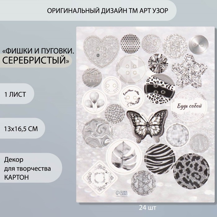 Decor for creativity cardboard "Chips and button. Silver" 24 pcs 13x16.5 cm