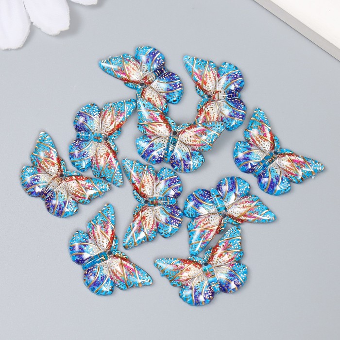 Decor for creativity Plastic "Butterfly with gold points" Blue 1.5x2.3 cm