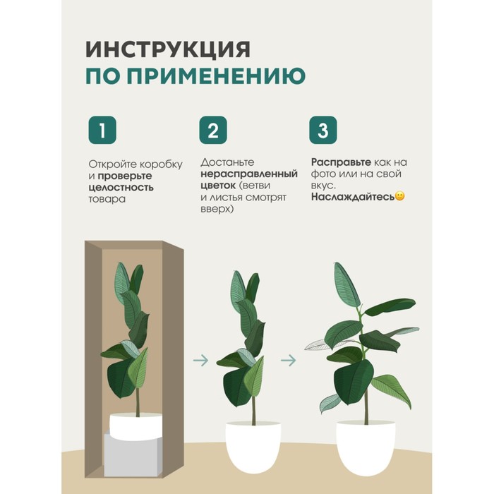 the soil inside the pot is made of foam, the barrel is made of flexible plastic with a metal frame inside, and leaves are made glue PVC material, thanks to which they are as similar as possible to the living.