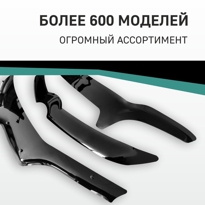 The aggressive aerodynamic shape of the deflector effectively redirects the air flows, protecting the paintwork of the hood and the windshield of the car.