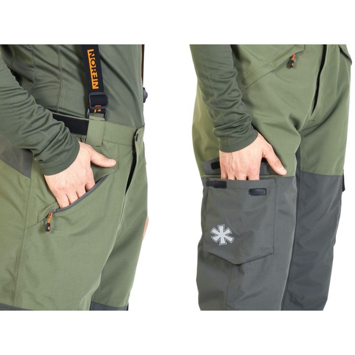 A suit for comfortable fishing in any weather. Three -layer membrane material will provide reliable protection against precipitation and wind. All internal seams are glued. Modern design, high functionality, ease and compactness in folded form. Jacket: an elongated back, the hood is attached with a lightning castle. Two -level adjustment of the volume of the hood, adjustable cuffs. Two spacious breast pockets with valves, two side pockets with zero clasps, an internal pocket with a zipper. A fixer tightening the bottom of the jacket. Pants: adjustable removable straps, adjusting the volume of the upper part. Strengthening the material on the knees and the sciatic, two lateral pockets.
