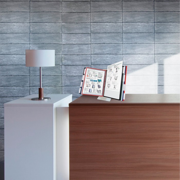 Brauberg Solid's table demonstration system allows you to conveniently and quickly place information about the company, about the offered goods, services and prices, staff instructions, etc. 10 double -sided color panels allow you to place up to 20 A4 sheets simultaneously. Durable and flexible cast frames of panels are made of polypropylene suitable for re -processing and further use. The demopolnels are equipped with removable tabulator labels for marking and convenient search for the desired information. The pocket of the demopaneli from a durable transparent material with anti -reflective coating will reliably protect documents from external influences. Perhaps both desktop and wall placement. Stylish gray color of the plastic case is suitable for most modern interiors.