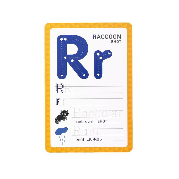 In this box you are waiting for cards that will help to study the letters of the English alphabet and learn how to write them. And since the cards are laminated, you can erase the written side of the marker.