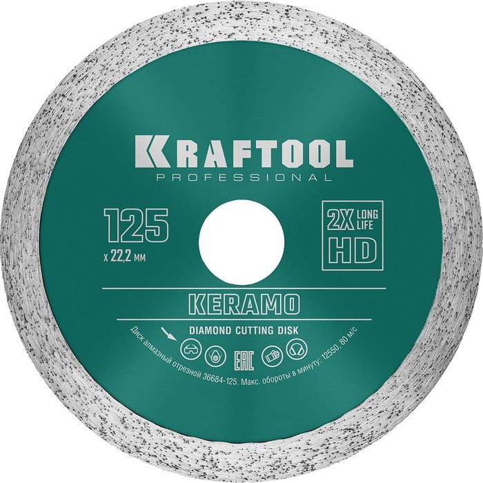 Diamond disk Kraftool 36684-125, continuous, d = 22.2 mm, 125 mm