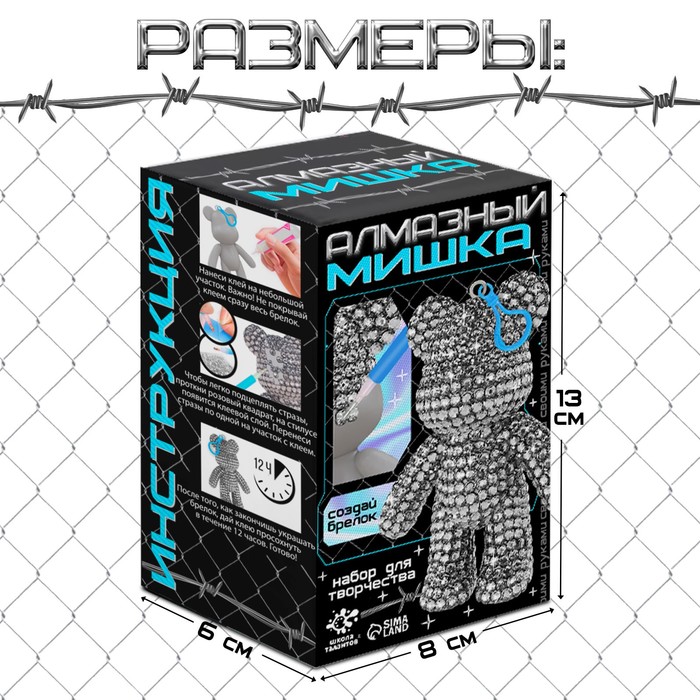 Diamond keychain "Bear", white color, with your own hands