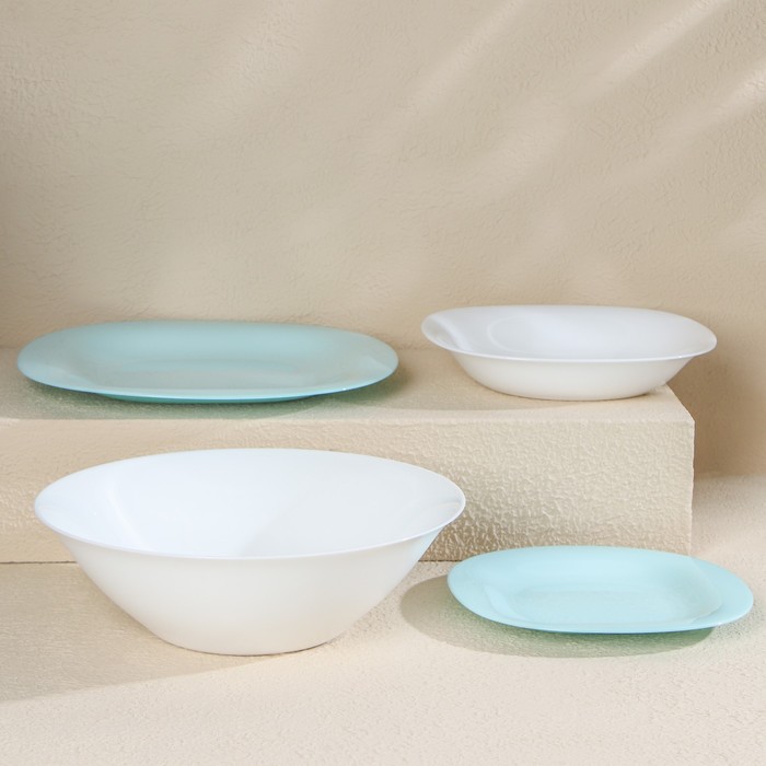 Dining Luminarc Carine Light, glass ceramic, 19 objects, white and turquoise color
