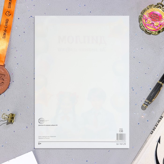 Diploma "For Knowing the ABC!" Pupils, paper, A4