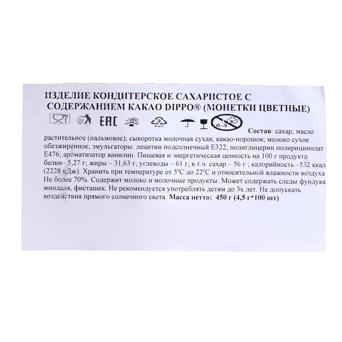 Bright packaging and an exquisite taste make Dippo coins ideal to please themselves or their loved ones. These little chocolate treats are perfect for a party, a holiday or as an original snack at any time of the day. The compact size of the coins allows you to easily take them with you, enjoying the rich taste of cocoa and the visual attractiveness of the package, which makes each piece special.