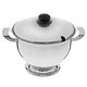 A stainless steel bowl is designed to mix the ingredients during the preparation of salads, dough, s..
