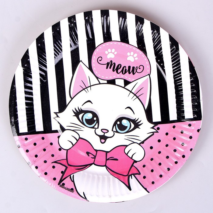 Disposable plate paper "cat", 18 cm, set 6 pcs