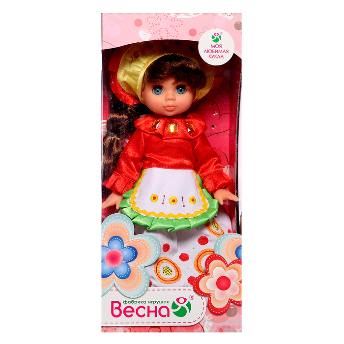 The Elya Dymkovo Baryna doll is dressed in a Russian national costume: a beautiful sundress with apron and kokoshnik. She has expressive closing eyes and firmware long hair, on which the young hairdresser will train to make hairstyles.