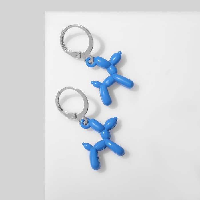 Earrings "Dogs" toy, blue color in silver
