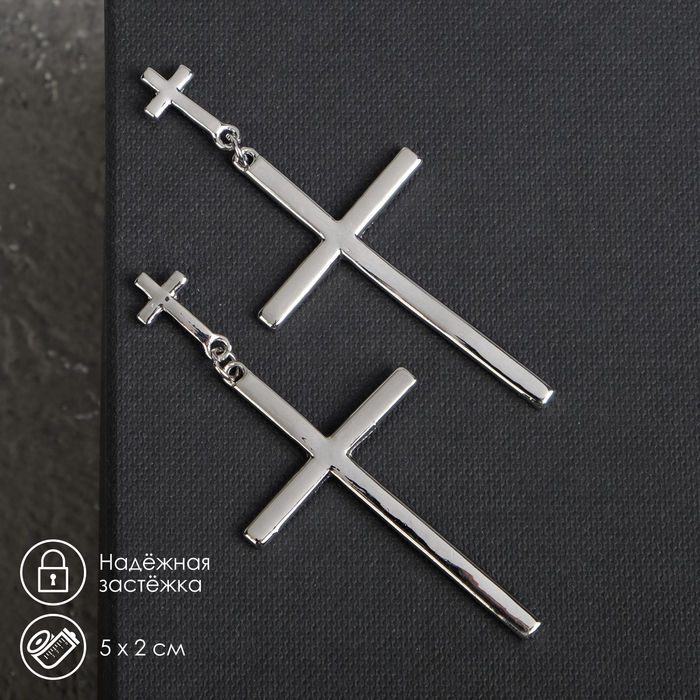Earrings Metal "Crosses" duet, color silver