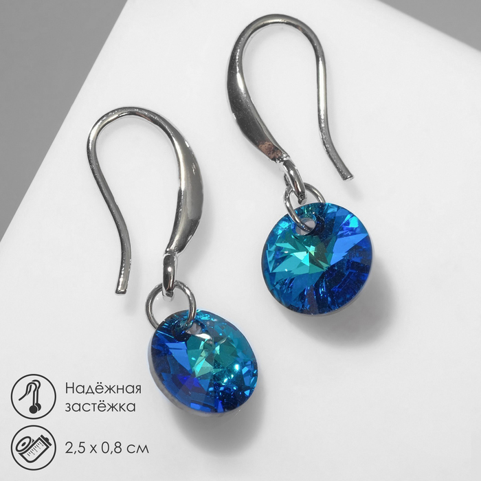 Earrings with Elite rhinestones mini, blue color in silver