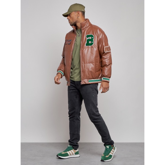 Eco -leather jacket men, size 52, brown color