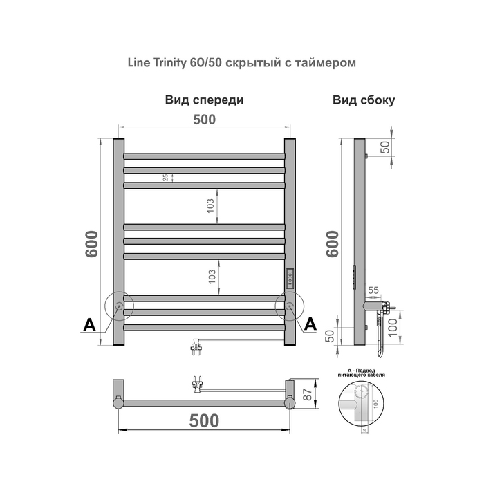 Electric towel Indigo Line Trinity, 600x500 mm, timer, black
