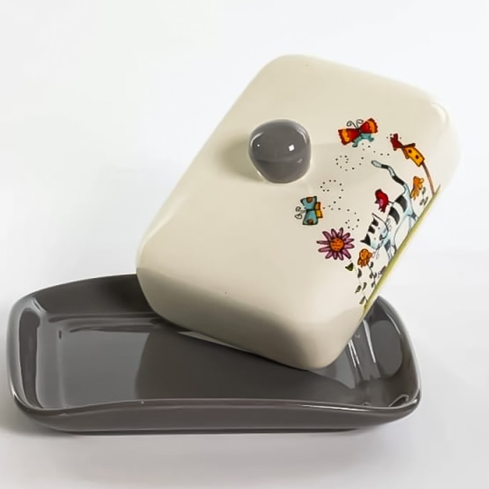 The classic butter is a saucer with a high cover covering a piece of oil.