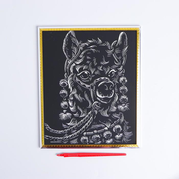 Engraving in the frame "cute lama" with a metallic effect "silver"