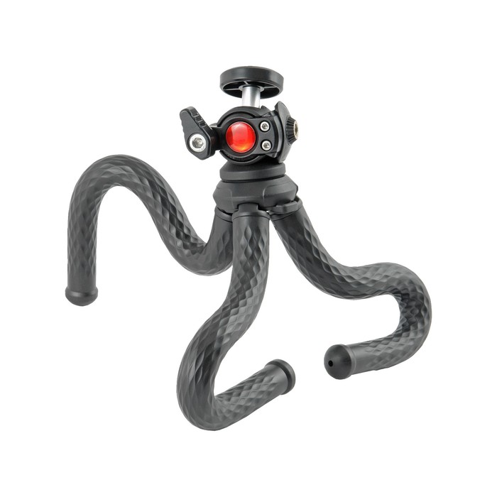 A desktop tripod is a trip with flexible legs with metal cores covered with strong rubber. The tripod allows multiple deformation of the legs and remembers the necessary shape for fixing on various surfaces - shelves, handrails, rods, etc.