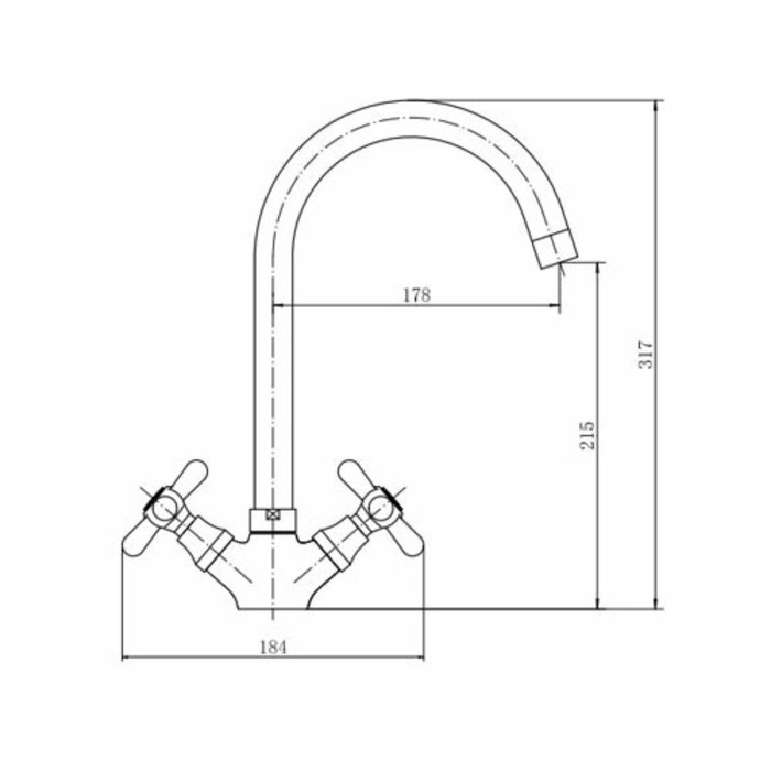 Fashun A4025 kitchen mixer, two -wound, brass, chromium color