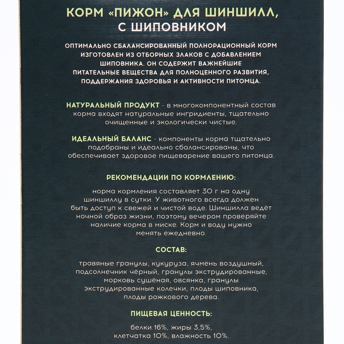 Feed "Piggon" for chinchillas, with rosehip, 400 g