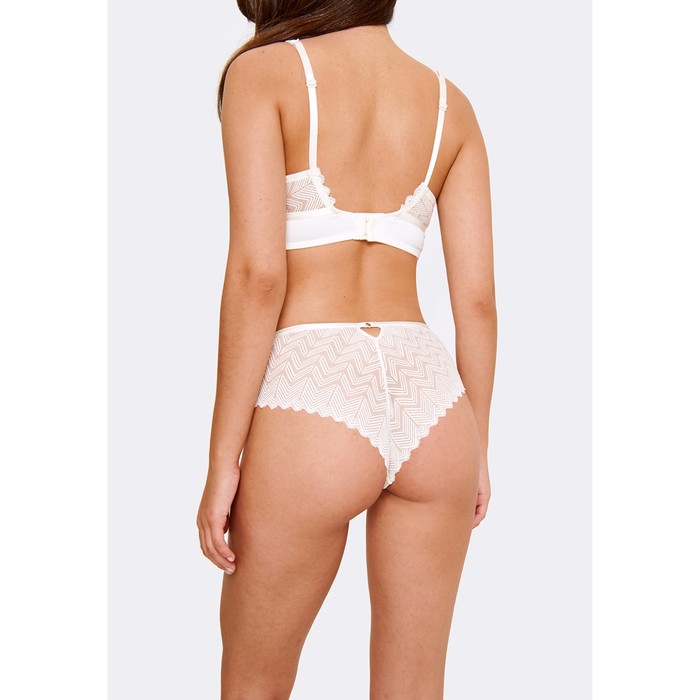 - Panties with medium landing are made of elastic lace of warm milk color