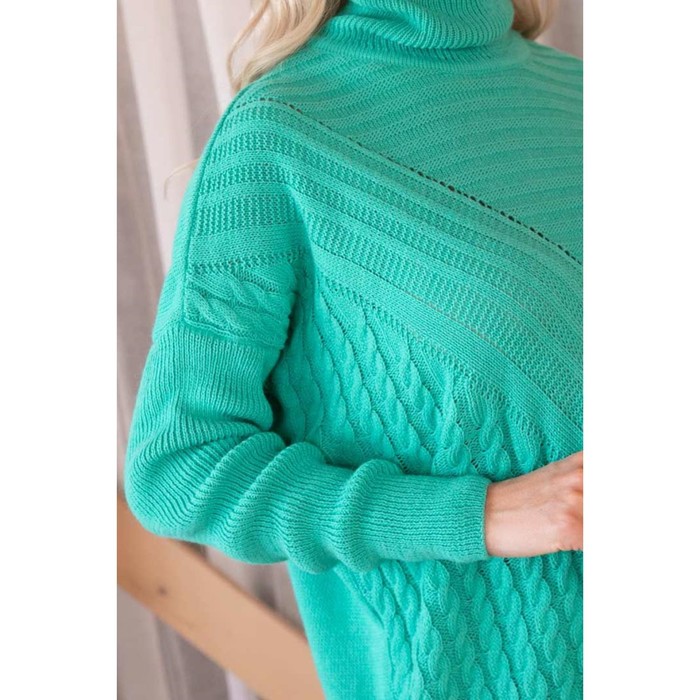 - The jumper is made using the manual knitting technique of natural woolen threads with the addition of viscose