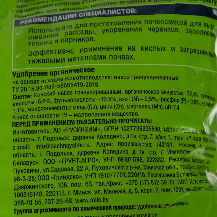 Designed for natural restoration and increased soil fertility, ensuring a balanced diet and forming a powerful root system of plants, survivability of seedlings, as well as accelerating the ripening timing of the crop. , trace elements (copper, zinc, manganese) in an easily digestible form, natural growth stimulants.