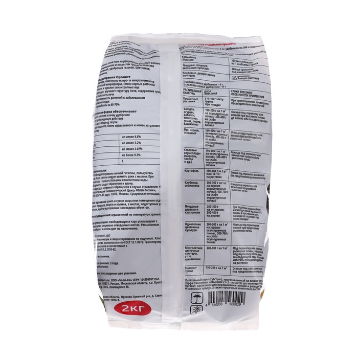the granular form of the product provides its convenience in use. One packaging of a chicken organ weighing 2 kg allows you to process a significant area of the Earth, which makes it an economically profitable choice for farmers and gardeners.