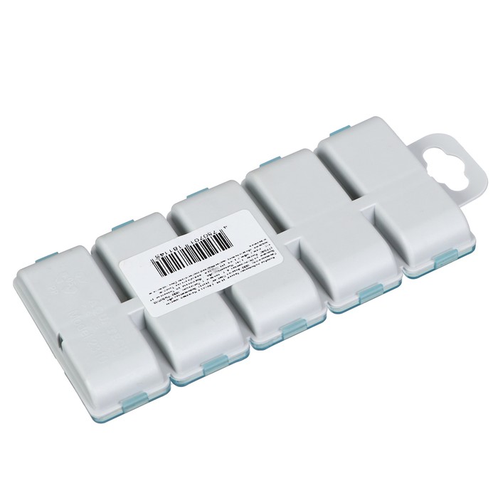 A small fishing box with cells for storing hooks, mormysh and flies. Each cell has a transparent cover.