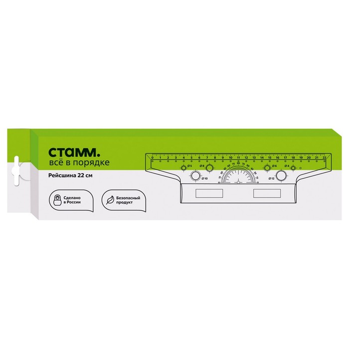 Flight 22 cm, designed to perform drawing and measuring work. The raisshina line is equipped with a metal roller, and is ideal for applying even parallel lines. The length of the scale is 22 cm. Thanks to the special coating of the roller, the ruler does not slip on paper. The product provides a transporter of 180 ° and 6 stencils of circles. Made of high -quality polystyrene. The flight is packed in a cardboard box with a Euro suspension. The color of the product is a transparent colorless.