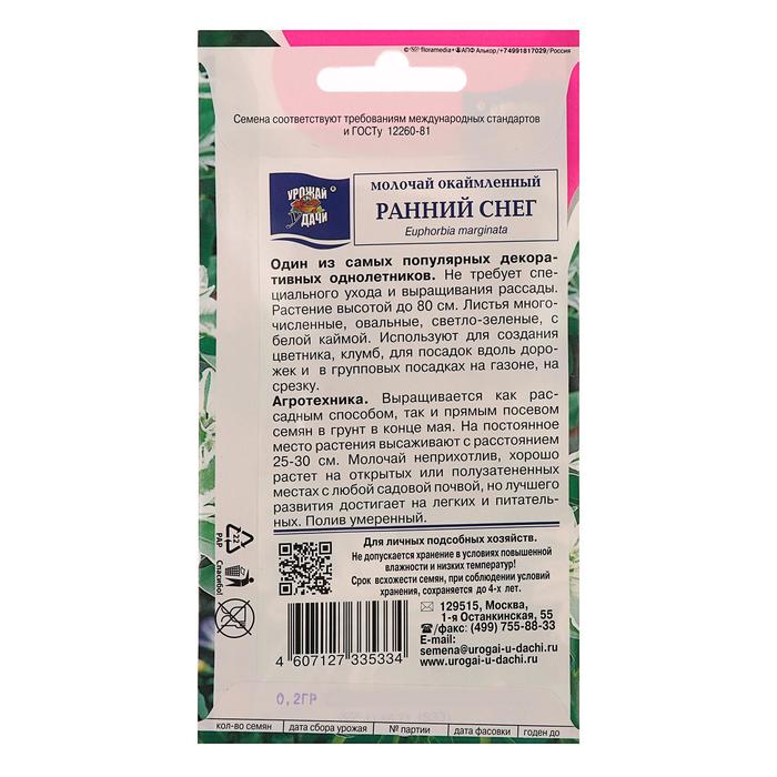 Poles of the bordered “Early Snow”-a decorative annual with white-green striped oval leaves, grows up to 60 cm. It is used for background plantings among bright summer colors, for cutting. Sowing seeds for seedlings is carried out in March-April, in early May it is transferred under a film shelter.