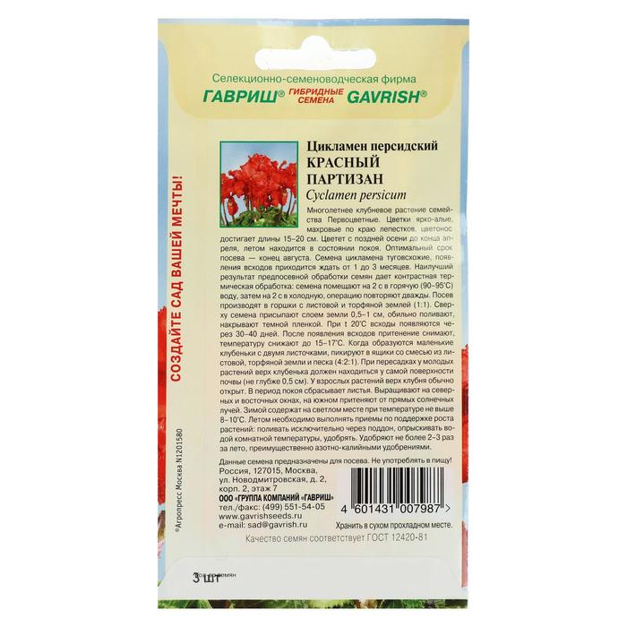 Flower seeds Cyclamen "Red Partisan", Persian, 3 pcs.