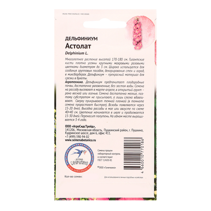 Flower seeds Dolphinium "Astolat", 0.1 g