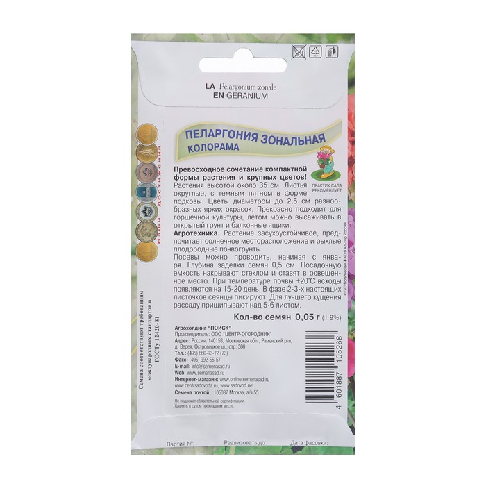 Flower seeds Pelargonium zonal "Coloram" 0.05 g