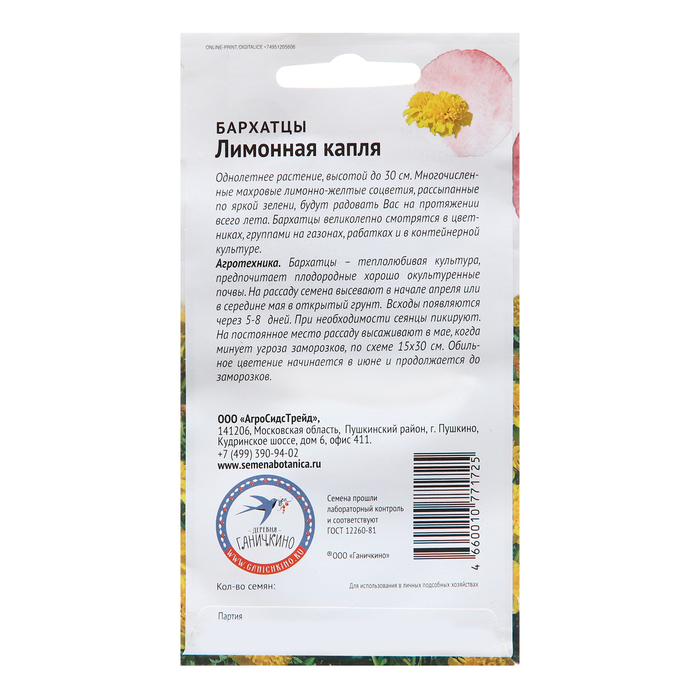 Flower seeds velvet "Lemon drop", 0.5 g