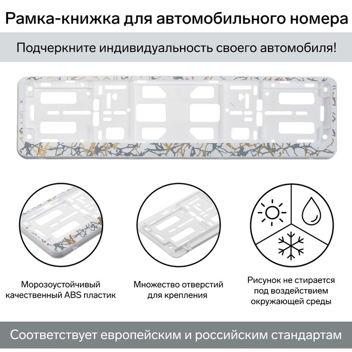 This frame is suitable for all types of cars. It does not require additional devices for strong fixation: just place the number in the base and fix it with the lower bar. The material of the product is resistant to external influences and temperature differences.