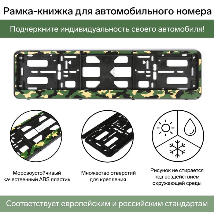 Frame for a car number, book, green camouflage