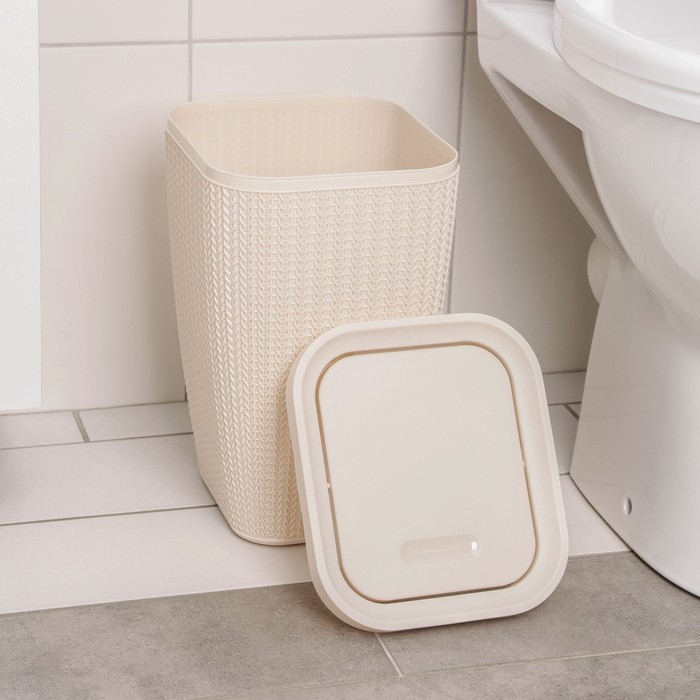 Garbage container "knitted weaving", 10 l, beige color
