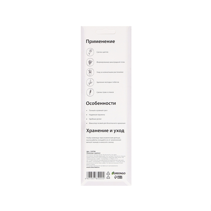 Greengo secateur is designed to thin out non -weed branches and the formation of the crown of trees and shrubs. It is also used when collecting grapes or when removing the antennae in strawberries.
